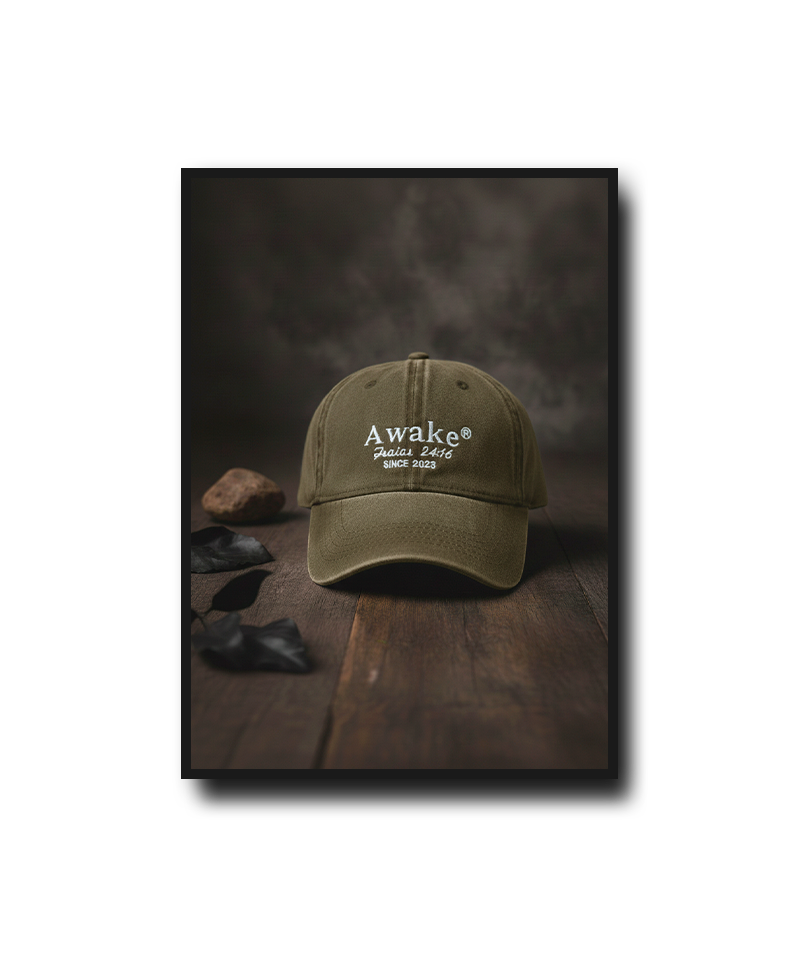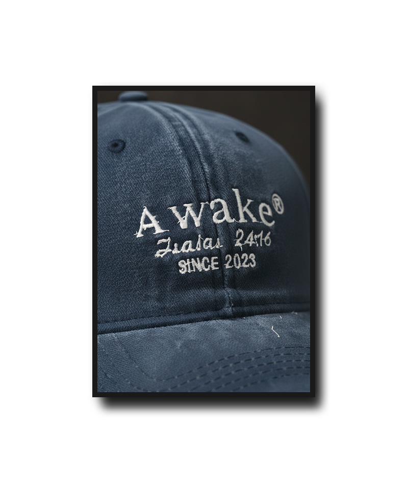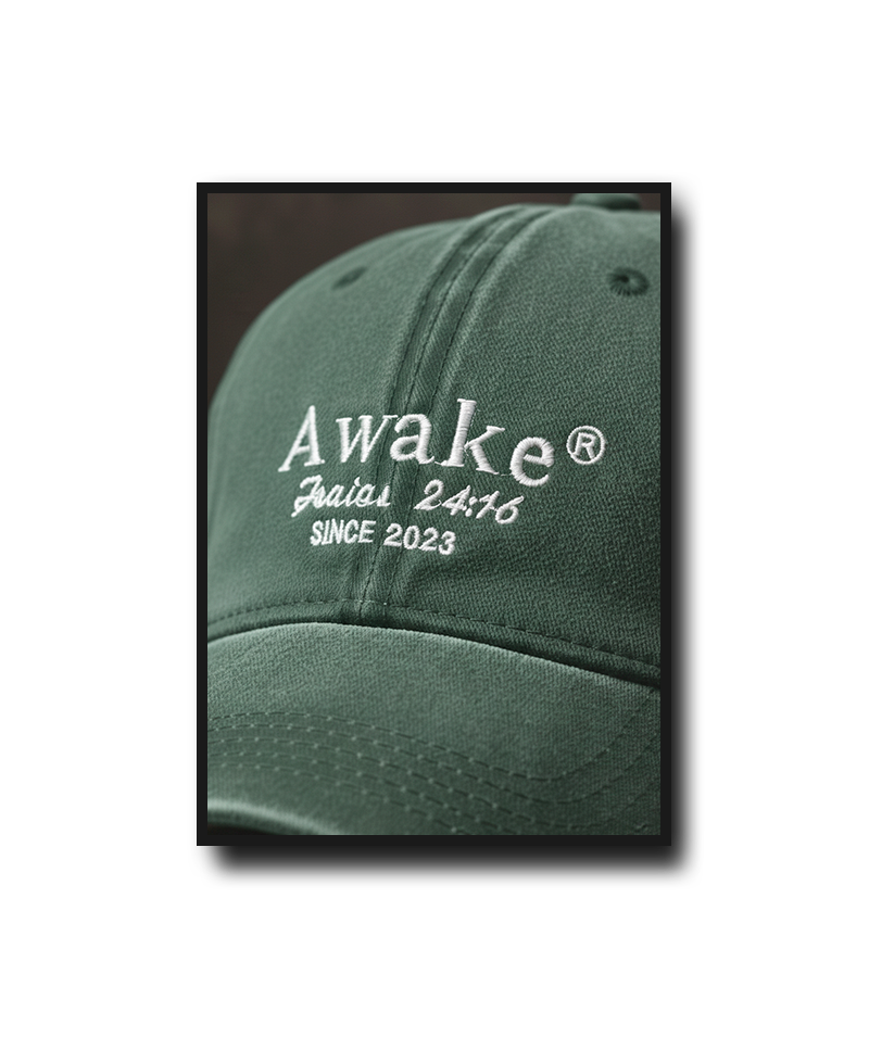 La colección de gorras Awake Vintage combina un diseño atemporal con un mensaje eterno. Bordadas con la palabra Awake y la cita bíblica Isaías 24:16, estas gorras están pensadas para quienes buscan un accesorio que exprese el despertar de la fe, de la iglesia y los valores de Jesús.